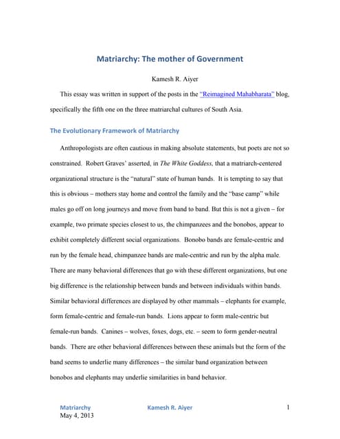 Any anthropologist worth his salt will agree that the earliest human societies were matriarchal. Title of a 1976 book by sculptor and art historian Merlin Stone. When God Was a Woman Mariner Books.